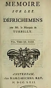 - Marquis de Turbilly. Mémoire sur les défrichements, Paris: chez la Veuve d'Houry, 1760