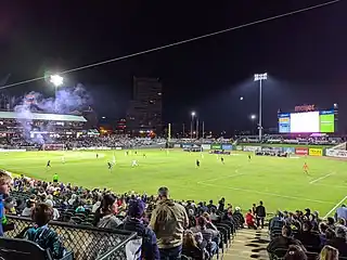 From the club's inaugural 2015 season through 2019, home games were played at Louisville Slugger Field. It is a multi-use facility that serves as the primary home of the Louisville Bats, Triple-A affiliate of the Cincinnati Reds. Though Slugger Field officially seats 13,131 for baseball games, an attendance of 8,000 was considered a soccer sellout due to limited viewing in the stadium's current baseball diamond configuration.[14] The pitcher's mound at Slugger Field was retrofitted with a retractable jack to allow a level playing surface for soccer games prior to the start of the inaugural season.[15]