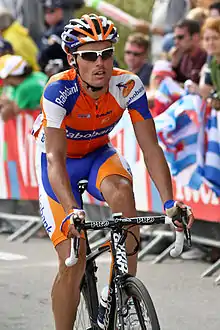 Luis León Sánchez Gil (born 24 November 1983) is a Spanish road bicycle racer, who currently rides for UCI WorldTeam Astana Qazaqstan Team.[7][8] Sánchez's major achievements include winning the overall classifications of the 2009 Paris–Nice and the 2005 Tour Down Under, as well as the one-day race Clásica de San Sebastián in 2010 and 2012. He also has four Tour de France stage victories and is a four-time winner of the Spanish National Time Trial Championships. He is a time trial specialist and has improved his climbing skills over the course of his career.
