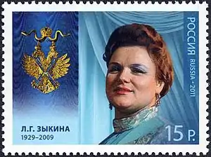 Lyudmila Georgievna Zykina (Russian: Людми́ла Гео́ргиевна Зы́кина; 10 June 1929 – 1 July 2009) was a national folk singer of Russia.