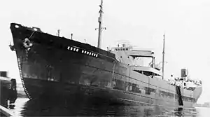 Around 10 January 1941, Esso Hamburg left Cherbourg for the North Atlantic, taking a position south of Cape Farewell in Greenland.[3] Esso Hamburg was part of Operation Berlin, which sailed on 22 January 1941, along with the naval oilers Uckermark and Ermland plus the tankers Schlettstadt, Adria and Friedrich Breme.[4] Esso Hamburg sailed north for approximately four weeks before encountering two cruisers. Following standard procedure, the ship tried to flee before the cruisers overtook Esso Hamburg and identified themselves as the Scharnhorst and Gneisenau.[3] On 14 February 1941, as part of Operation Berlin, Esso Hamburg shipped about 2,582 m3 (568,000 imp gal) of oil to the capital ship Scharnhorst.[3][5] According to later prisoner statements, the ship remained in the area north of the Grand Banks of Newfoundland for over two months, where the cold was considered intense (as the crew lacked warm clothing).[3] These prisoners stated that American patrol vessels capable of 20 knots were sighted and Esso Hamburg was fired on, leading Captain Braunwarth to think his ship was being followed.[3] According to Captain Braunwarth (whose interrogation statements have been proven to be false or unreliable), he decided to return to port in St. Nazaire after the rudder was damaged in a storm.[3] On 12 April, the ship returned to port, completing its first Atlantic voyage.[3]