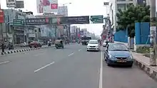 Mahatma Gandhi Road (MG Road), popularly known as Bandar Road, (Telugu: బందర్ రోడ్) is a boulevard and major road in the Indian city of Vijayawada.The road starts at Benz Circle, busiest traffic circle in the city and continues to Avatar Park, where it connects to Eluru Road which is also a major road. It runs almost parallel to the Bandar Canal. The National Highway 9 (NH 9) runs parallel to this road on the other side of the Bandar Canal, merging into Bandar Road at Benz Circle. The name "Bandar" was originally the name of Machilipatnam Road, which the current Bandar Road intersects.