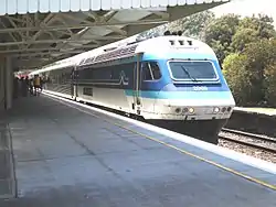 Electrification reached Parramatta in 1928 and Penrith in 1955.[4] In the 1950s, the section of the line over the Blue Mountains was electrified primarily as a means of easing the haulage of coal freight from the western coalfields to the coastal ports,[5] but a by-product of this programme was the introduction of electric interurban passenger services as far west as Bowenfels, later cut back to the current terminus of Lithgow.[6] Since the late 1990s goods trains are now exclusively diesel hauled, with the only electric trains being passenger services using double deck interurban cars.