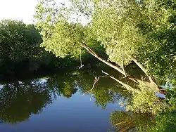 The Malaya Kokshaga (Mari: Изи Какшан, Izi Kakšan; Russian: Малая Кокша́га, literally Little Kokshaga) is a river in Mari El, a left tributary of the Volga. It is 194 kilometres (121 mi) long, and has a drainage basin of 5,160 square kilometres (1,990 sq mi).[1] It originates in the northern part of the republic, passes through its capital, Yoshkar-Ola, and flows to the Kuybyshev Reservoir, Volga near Kokshaysk. The Malaya Kokshaga is mainly fed by snow. From November till April, the river is frozen. The riverbed is meandering; there are many former river beds in the valley. The main tributary is the Maly Kundysh.