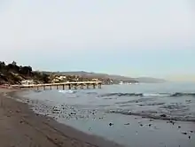 Beaches on the Malibu coast include Big Rock Beach, Broad Beach, County Line Beach, Dan Blocker Beach, La Costa Beach,[56] Las Flores Beach,[57] Malibu Beach, Point Dume Beach, Surfrider Beach, Topanga Beach, and Zuma Beach. State parks and beaches on the Malibu coast include Leo Carrillo State Beach and Park,[58] Malibu Creek State Park, Point Mugu State Park,[59] and Robert H. Meyer Memorial State Beach,[60] along with individual beaches such as El Matador Beach, El Pescador Beach, La Piedra Beach, Carbon Beach, Surfrider Beach, Westward Beach, and Escondido Beach.[61] Paradise Cove, Pirates Cove, Trancas, and Encinal Bluffs are along the coast in Malibu. Point Dume forms the northern end of the Santa Monica Bay, and Point Dume Headlands Park affords a vista stretching to the Palos Verdes Peninsula and Santa Catalina Island.