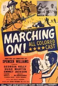 Marching On! is a 1943 American race film directed and written by Spencer Williams. Sequences were filmed at Fort Huachuca, Arizona. The film was later rereleased with additional musical sequences under the title Where's My Man To-nite?.