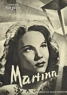 Martina is a 1949 West German drama film directed by Arthur Maria Rabenalt, and starring Jeanette Schultze, Cornell Borchers, and Siegmar Schneider.[1] It was shot at the Tempelhof Studios in Berlin. The film's sets were designed by the art directors Willi Herrmann and Gabriel Pellon.