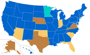 Mathematics education in the United States varies considerably from one state to the next, and even within a single state. However, with the adoption of the Common Core Standards in most states and the District of Columbia beginning in 2010, mathematics content across the country has moved into closer agreement for each grade level. The SAT, a standardized university entrance exam, has been reformed to better reflect the contents of the Common Core.[1] However, many students take alternatives to the traditional pathways, including accelerated tracks. As of 2023, twenty-seven states require students to pass three math courses before graduation from high school (grades 9 to 12, for students typically aged 14 to 18), and seventeen states and the District of Columbia require four.[2] A typical sequence of secondary-school (grades 6 to 12) courses in mathematics reads: Pre-Algebra (7th or 8th grade), Algebra I, Geometry, Algebra II, Pre-calculus, and Calculus or Statistics. However, some students enroll in integrated programs[3] while many complete high school without passing Calculus or Statistics.[4][5] At the other end, counselors at competitive public or private high schools usually encourage talented and ambitious students to take Calculus regardless of future plans in order to increase their chances of getting admitted to a prestigious university[6] and their parents enroll them in enrichment programs in mathematics.[7]