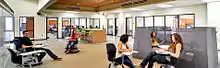 Because McMillen was built in 2011, the campus features many unique design and architectural aspects that are not found at any other school in the district. SHW Group designed the 278,800 SF building to include a series of both formal and informal learning spaces. Each education wing is intended to promote collaboration between students and teachers in both the "pod" (an innovative learning and gathering area featuring whiteboards, study tables, and chairs) and the classrooms surrounding it. The pods were designed to provide flexibility and additional space for instruction, discussion, and project work. The campus also features comfortable seating areas and café tables for the students.[6]