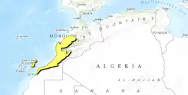 This ecoregion occupies 1,000,000 km2 (390,000 sq mi) in Morocco, northwestern Western Sahara, and the eastern Canary Islands (Lanzarote, Fuerteventura, and associated islets). On the African mainland, it encompasses the Atlantic coastal plain, the lowlands of Al Haouz Province, the valleys of the Sous River and Draa River, and the westernmost part of the High Atlas and Anti-Atlas Mountains.[1]