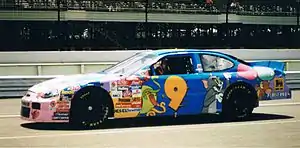 Lake Speed in the Cartoon Network No. 9 Ford, about to qualify for the Pocono Raceway Winston Cup Race, June 1998.