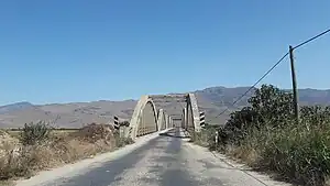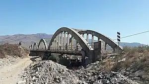 The Menemen Gediz Bridge[2] (Turkish: Menemen Gediz Köprüsü), also known as the Old Gediz Bridge (Turkish: Eski Gediz Köprüsü), officially named the Governor Kâzım Dirik Bridge (Turkish: Cumhurluk Vali Kâzım Dirik Köprüsü) and historically called the Buruncuk Bridge (Turkish: Buruncuk Köprüsü), is a 156.6 m (514 ft) long bowstring-arch bridge that crosses the Gediz River near Menemen, Turkey. Completed in 1935, the bridge was one of the first five reinforced concrete bridges built by the Republic of Turkey.[1]