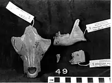 Mesocyon ("middle dog") is an extinct genus of the Hesperocyoninae subfamily of early canids native to North America. It lived from the Oligocene to Early Miocene, 30.3—20.3 Ma, existing for approximately 10 million years.[1] Fossils are known from Oregon, southern California and the northern Great Plains. It was roughly coyote-sized, and the first known canid to have a primarily meat-based diet.[2]