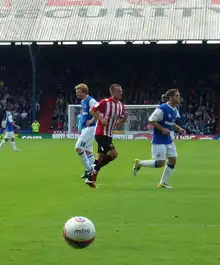 Doyle signed for Sheffield United on a free transfer during the January 2011 transfer window, a move that reunited him with former boss Micky Adams,[10] and made his début in a 1–0 loss to Leicester City a few days later. He played regularly for the remainder of the season but with the club in decline he was unable to help to stop the Blades slipping to relegation. Regaining his place in the starting eleven at the outset of the following season, Doyle was awarded with the captain's armband as he played regularly in the centre of midfield. As the team challenged for promotion, Doyle scored his first goal for the Blades in January 2012, scoring against Yeovil Town at Bramall Lane.[11]