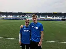 Beran (left) with Johnny Reynolds in 2018 at their trial with PEC Zwolle at MAC³PARK Stadion.