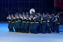 The Presidential Band is a ceremonial unit that operates under the auspices of the State Security Service of Kazakhstan. It performs for all state functions, especially those concerning the President of Kazakhstan. From 1992 to 2014, it was known as the Band of the Republican Guard. It is known in part due to its turquoise and white full dress uniforms.[6]