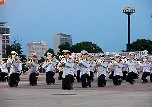 It descends from a trumpet class founded in 1924 at the People's Military Command School.[4] The college began as a fine arts course when it began in October 1991. When it started, many Mongolian and foreign musicians were brought in to help manage the college. In 1992, one year after the establishment of the course, it was converted into a Music Department and later was given its current name, with its structure being expanded as a result. Since 1991, the college has taken part in the Mongolian State Flag Day military parade on Sükhbaatar Square as part of the corps of drums and the massed bands. All cadets at the college graduate with a bachelor's degree in musical arts, which can aide students who chose to specialize as conductors of unit bands.[5][6]