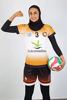 Mina Roosta is referred to as "the best female sprinter of Iran".[5] She was also part of the Iranian women's volleyball team in the 2020 Tokyo Olympic selection competition.[6][7] The Spanish Badajoz Club entered the Spanish Volleyball League and the first Iranian female legionnaire won a league title in the Spanish League.[8][9]
