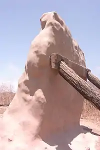 The enclosure was rectangular, with the church and the residential quarters facing east and south. It had an open patio, the only entrance to which was a large door located in the southeast corner of the complex, protected by a barrack. The complex also included an irrigation ditch, four granaries, two houses, a corral, and three other rooms.