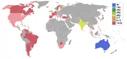 | Withdrawals | Ceylon, Colombia, Cyprus, Guyana, Korea, Luxembourg, Nicaragua, Panama, Trinidad and Tobago, Tunisia |