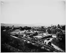 Mission Historical Park is a 10-acre park (4.0 ha) located to the east of the Santa Barbara Mission in Santa Barbara, California. The park hosts a large open grassy area, the A.C. Postel Memorial Rose Garden, a fountain, hiking trails, a variety of sycamore and native oak trees, a historic olive grove dedicated to World War I veterans, remains of tannery vats, a pottery, gristmill, and a historic reservoir and aqueduct system. The park and the Mission were designated as a California State Historical Landmark on July 12, 1939 (No. 309).[2]