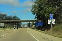 MS 30 along its concurrency with I-22/US 78 in New Albany