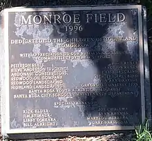 Plaque for Monroe Field, Monroe District, Santa Rosa, 1996