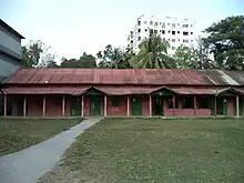 In 1930, J. R. Cunningham, Director of Public Instruction of Assam, issued a circular banning Anti-British activities, independence movement, and forced students and parents to sign undertaking declaring they would participate in those activities.[2][3] The school was burned down in protests against the circular.[2] The entrance examination center for Moulvibazar (South Sylhet mahakuma) was in Sylhet until 1938. In 1933, the school was approved as a center for entrance examination. After the end of the Bangladesh Liberation War, the school was used as a transit camp to store explosives and ammunitions left from the war.[4] On 20 December 1971, the storage at the school exploded. 25 bodies of Mukti Bahini personnel were recovered from the school but the death toll was believed to be higher.[4][5] They were buried in the playground of the school.[6] A shaheed Minar and a monument to the victims was built at the site of the explosion.[4] 20 December is observed as Moulvibazar's Shaheed Day.[4][7]