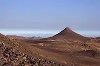 Mount Tahat (Arabic: جبل تاهات) is the highest mountain peak in Algeria. It sits at an elevation of 2,908 metres (9,541 ft).[4][5] Other sources indicate an elevation of 3,003 metres (9,852 ft).[6] Tahat is also the highest peak in the Hoggar Mountains. Its nearest city is Tamanrasset which is located 56 kilometres (35 mi) to the south.