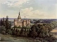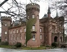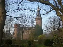 Moyland Castle (German: Schloss Moyland) is a moated castle in Bedburg-Hau in the district of Kleve, one of the most important neo-Gothic buildings in North Rhine-Westphalia. Its name derives from the Dutch word Mooiland which means "beautiful country". The name was probably coined by Dutch workers, whom the then-leaseholder Jacob van den Eger of the Lower Rhine brought to the property in 1307 to drain the surrounding wetlands.