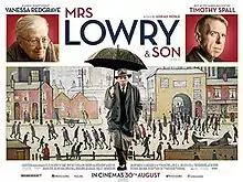 Mrs Lowry & Son is a biographical drama film set in Pendlebury Greater Manchester, chronicling the life of the renowned artist L. S. Lowry. It was directed by Adrian Noble from a screenplay written by Martyn Hesford who also wrote the original play, and considers the relationship between Lowry and his mother Elizabeth, who has reservations over her son's career in painting.[2] It stars Vanessa Redgrave and Timothy Spall in the title roles, with Stephen Lord, David Schaal and Wendy Morgan in supporting roles.