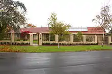 John Muir was to bring this important project to the newly formed practice.[2] Work on the Waller estate was to last for over a decade, with their Ballarat office servicing the development of this ongoing project. Australia experienced severe housing shortages after World War II. Private housing developments were to become common at this time, and were to profoundly change the pattern of Australian residential development. The Waller estate is said to represent the first and most intact example of housing development built by a private consortium in Ballarat. John Muir and the practice of Muir and Shepherd are attributed to the design of the majority of the houses built by the Waller syndicate within this estate.[4] To create architectural diversity throughout the development Muir was commissioned to design a variety of domestic types. It has been noted that in a number of the firms designs that although the front elevations were similar, the plans differed. Described as post-war suburban, most of these houses were brick veneer in construction with terracotta roof tiles with small front porches and windows that wrap around corners. This estate was developed by the Waller consortium until 1961.[4]