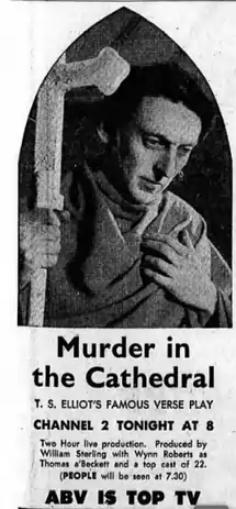 Murder in the Cathedral is a 1962 Australian television play adapted from T. S. Eliot's 1935 play Murder in the Cathedral, about Thomas Becket.[2] It was one of a number of verse plays produced by the ABC.[3]