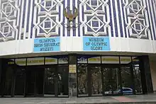 Museum of Olympic Glory (Uzbek: Olimpiya shon-shuhrati muzeyi) is a museum in Tashkent, dedicated to the Olympic movement. The main goal of the Museum of Olympic Glory is the organization of exhibitions of exhibits demonstrating achievements of Uzbek athletes at the Olympic Games. The museum presents exhibits in 2088, of which 1005 are available at any time. The museum has a video library, which contains videos of the Olympic Games.[1] Also on display are gold medals for contribution to the development of the sports movement, Islam Karimov sent to the museum.[2]