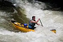 The white water rafting here consists of class I, II and III rapids at different parts of the river. Class I is considered easy and smooth, with occasional sand banks, and has gentle curves. The most difficult problems might arise when paddling around bridges and other obvious obstructions. Class II is considered moderate. It has medium-quick water and rapids, regular waves, and open passages between rocks. Knowledge of how to maneuver a raft is required and tour guides are recommended for beginners. Class III is moderately difficult. It has numerous high and uneven waves with rocks and whirls. The passages are clear but narrow and require experience to raft down. Visual inspection is required if rapids are not well known. The class III rapids are located at the end of river for 30 seconds.[6] The Nantahala River is located at the end of the Nantahala National Forest. The white water rafting trip consisted of eight miles of clear water that takes about 3 to 4 hours. The tours were fully guided by professional white water rafters who are trained first aid. The river is dam-controlled river, good water flow at any time of the year. Kayaking also occurs as a recreational sport down this river. A popular form of kayaking in this region is called duckys, or an inflatable kayak to make it easier to go down the river and back up quickly.[7] The duckys are suggested for experienced river rafters who are looking for a more high-performance trip down the river.