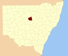NarangarieWarrumbungle Shire Council31°56′54″S 149°33′04″E / 31.94833°S 149.55111°E / -31.94833; 149.55111 (Narangarie)