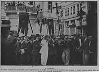 In retaliation against the "National Defence" coup, a royalist paramilitary unit called the "Reservists" (Epistratoi-Επίστρατοι) was formed, in a number of Greek cities, led by Colonel Ioannis Metaxas (one of Constantine's closest aides and a future dictator of Greece). The Reservists, whose men were largely of lower-middle class origin, was an ultra-nationalist group which displayed proto-fascist tendencies.[37] The uniformed Pan-Hellenic Reservists were the first mass movement in modern Greek history, and also marked the beginning of an embrace of violence as part of the political process.[37] The Greek historian Kostas Kostis wrote the legacy of violence caused by the Balkan Wars "...helps explain with which they resorted to violence, even against their own compatriots: the Venizelists were merely enemies, much like the Bulgarians and the Turks. The fact that these opponents were unarmed citizens was of little importance."[37] The group targeted Venizelist people in Athens and nearby areas, culminating in the Noemvriana, the "November events", which were ignited by an armed confrontation between Greek reservists and French marines.[45] The Noemvriana left about 60 dead on the Allied side and 40 dead on the Greek side.[46] Afterwards, a reign of terror was launched by the Reservists against the Venizelists in Athens.[46] During the Noemvriana, refugees from Anatolia (who had escaped persecution by the Turks) living in Athens, were attacked by the Reservists as Venizelists.[47] The attacks and murders against the refugees contributed to the identification of the refugees with Venizelism, and in the 1920s the refugees were one of the strongest Venizelist voting blocs.[47]