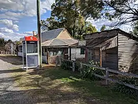 The discovery of alluvial gold on the Shoalhaven River in 1851 led to increased interest in the area around Nerriga, and the town began to grow, with the Commercial Hotel opening for business some time around 1864.[8] The building still stands today, but is now known as the Bark Tree Hotel. Records show that between 1878–1901, the peak of production in the area, some 14,177 ounces (401,900 g) of gold were produced from the Nerriga Mining Division. Some quartz reefs were also worked in the area, however the yields from these activities were not significant. Prospecting on a large scale continued through to the 1960s.[9]