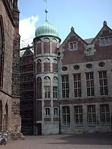 The New Town Hall (German: Neues Rathaus) has stood on the Domshof in the centre of Bremen, Germany since 1913. Located behind the Unser-Lieben-Frauen-Kirchhof cemetery, it is adjacent to the older section of the Town Hall with which it forms a harmonious ensemble. Among its sumptuous rooms decorated with local artefacts, the New Town Hall houses the Senate Chamber used by the Senate for its regular meetings and the Great Hall, a venue for official receptions. In 2004, Bremen Town Hall was listed as a UNESCO World Heritage Site, together with the Roland of Bremen, because of its outstanding architecture and testimony to the development of civic autonomy during the Holy Roman Empire.[1]