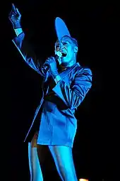 Nightclubbing's distinctive amalgamation of rock, funk, post-punk, pop and reggae set Jones apart from other musical acts of the 1980s. It is considered one of the early convergences of "fashion, art, and music".[17] According to Pitchfork's Andy Beta, it "altered the face of modern pop". He further argued that the album's musical and visual influence is easily palpable in the musical landscape of the 21st century, specially among female musicians such as Lady Gaga, Rihanna, Nicki Minaj, M.I.A., Grimes and FKA Twigs, among others.[2] Other acts influenced by the record include Róisín Murphy, Janelle Monáe, Azealia Banks and Adam Lambert.[17] Beyond pop music, the template set by Jones and her Compass Point backing band was also influential to alternative music, including Massive Attack, Todd Terje, Gorillaz, Hot Chip, and LCD Soundsystem – who "emulate those rubbery yet taut grooves of Sly & Robbie and cohorts".[2] In Q, John Harris wrote: "The fact that this music was first released 33 years ago beggars belief: it showcases great minds alighting on the future, and points the way to Madonna, Björk, Lady Gaga, Gorillaz, M.I.A. and more."[44] According to Molly Beauchemin, Jones "pioneered the way for Shamir, Stromae, and countless other dance mavericks of today – not just with her bewitching candor but through her use of androgynous innuendo".[12] Polari Magazine considered Nightclubbing to be "a defining moment in the history of pop music".[24]