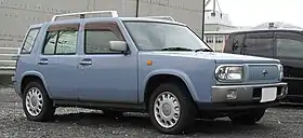 The Nissan Rasheen (Japanese: 日産・ラシーン, Hepburn: Nissan Rashīn) is a compact crossover SUV with four-wheel drive capabilities produced from November 1994 to August 2000 by Nissan. A prototype was first shown at the October 1993 Tokyo Motor Show. It was offered with three different inline-four engines: from the original 1.5-liter GA15DE, to a larger 1.8-liter SR18DE, and finally a 2.0-liter SR20DE in the Rasheen Forza. The car has five seats and a rugged, quirky and angularly styled body. It is a very small and short four-wheel drive that is often compared to Eastern European cars in design, particularly the Wartburg 353, but is also reminiscent of Nissan's "Pike" cars (Be-1, Pao, Figaro, and S-Cargo). As for the Be-1 and Figaro, Rasheen production was carried out by contract manufacturer Takada Kogyo. It was exclusive to Nissan Japanese dealership network called Nissan Red Stage.