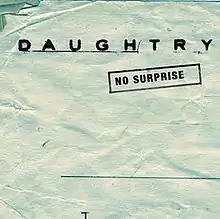 "No Surprise" is a song recorded by American rock band Daughtry for their second studio album, Leave This Town (2009). It was released May 6, 2009 as the album's lead single, and the band debuted the song on American Idol that night.[1] Chris Daughtry wrote the song with Chad Kroeger, Joey Moi, Eric Dill, and Rune Westberg, while Howard Benson handled the production.