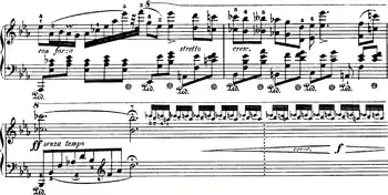 meter. It is written in ternary form; after the primary theme, the secondary theme starts in measure 19, followed by a modified version of the primary theme in measure 70.