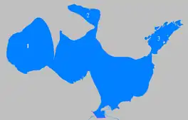 | Surface area | 3,300 km2 (1,270 sq mi) (2008) 2,550 km2 (985 sq mi) (2003) |