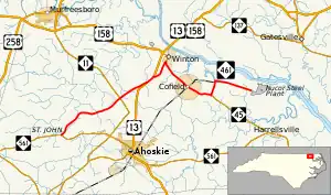 North Carolina Highway 461 (NC 461) is a primary state highway in the U.S. state of North Carolina. Its western terminus is at NC 561, passes through Winton and Cofield, and has its eastern end at an entrance to a Nucor steel plant east of Cofield.
