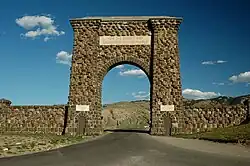 The North Entrance Road Historic District comprises Yellowstone National Park's North Entrance Road from Gardiner, Montana to the park headquarters at Mammoth Hot Springs, Wyoming, a distance of a little over five miles (8 km). The North Entrance Road was the first major road in the park, necessary to join the U.S. Army station at Fort Yellowstone to the Northern Pacific Railroad station at Gardiner. The road includes the Roosevelt Arch at the northern boundary of the park and winds through rolling terrain before crossing the Gardner River and joining the Grand Loop Road.[2]