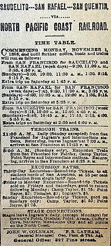 - ↑ Wood, Jim (18 November 2016). "Remnants of the Rail Era". Marin Magazine. December 2016. Retrieved 17 April 2019.