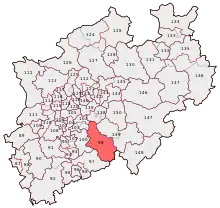 Oberbergischer Kreis is an electoral constituency (German: Wahlkreis) represented in the Bundestag. It elects one member via first-past-the-post voting. Under the current constituency numbering system, it is designated as constituency 99. It is located in southern North Rhine-Westphalia, comprising the Oberbergischer Kreis district.[1]