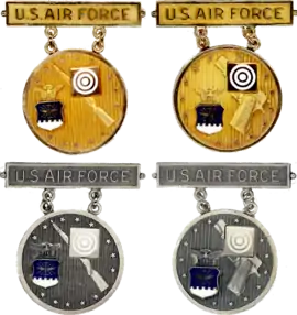 - ↑ Badge, Non-National Rifleman, United States Air Force, Badge, Pistol, Non-National United States Air Force, Badge, Rifleman, Non-National, United States Air Force, and Box, Presentation, Badge, Pistol, Non-National, United States Air Force; Smithsonian Institution's National Air and Space Museum; last accessed 8 September 2018
