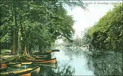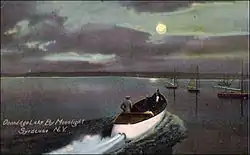 Onondaga Lake also became a popular resort area.[18] By the late 19th century, its shoreline was dotted with hotels, restaurants, and amusement parks.[15] The area was so popular that people traveled by railroad from as far as New York City to visit the lake. Fish from the lake were harvested and served in restaurants across the state.[19][6]